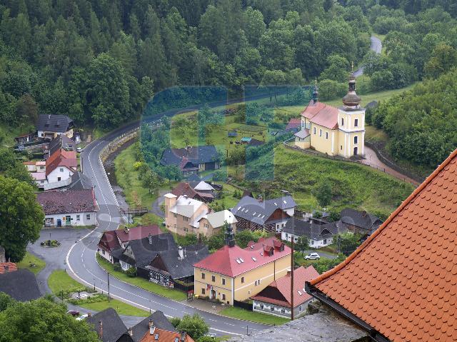 | Popis: | Pohled z hradu. Silnice, řeka, barokní kostel. Okres Svitavy. |